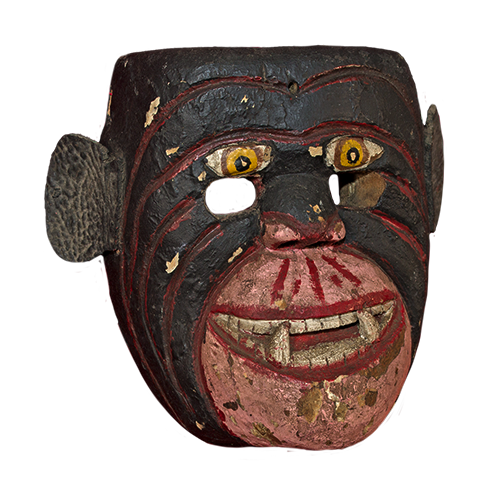Materiales: Madera tallada, policromada con aplicación; orejas de piel animal